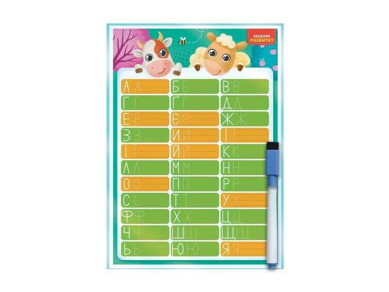 Обводьте, пишіть, навчайтеся та грайте разом із дошкою-тренажером «Абетка». Що робити? Розвиваючий набір містить двосторонню дошку та маркер. З одної сторони зображено букви, а з іншої – слова. Обводьте їх спочатку по контурах, а потім прописуйте самостійно. Маркер легко витирається з поверхні дошки, тож писати можна безліч разів! Граємо та тренуємо: мовлення, читання, логічне мислення, пам’ять та дрібну моторику. А також вивчаємо українську. Цікаві та різноманітні вправи для розвитку в посібнику від Академії розвитку: ******************** Набір містить: двосторонню дошку А4, маркер «Пиши-витирай». Вік: 3-5 років. Характеристики Вік 3-5 Кількість гравців Граю сам Мова Українська Направленість Читання, Мовлення Серія Академія розвитку Категорії ВСІ ІГРИ, РОЗВИВАЮЧІ ІГРИ Д х Ш х В (мм) 237 x 18 x 335