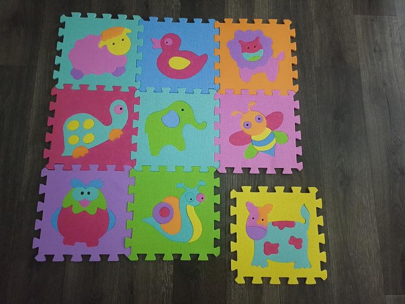 Коврик в идеальном состоянии, без повреждений и следов использования. Всего 9 элементов. Размер одного пазла: 30 х 30 см, толщина: 0,8-0.9 см.
