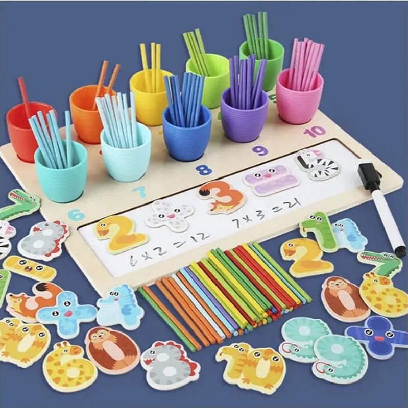 Представляємо вам світ чарівної математичної дитячої гри. У цьому дивовижному наборі числа немов оживають перед очима маленьких математиків і перетворюються на кумедних тварин. Тут дитина легко навчиться рахувати, із задоволенням виконуватиме прості математичні дії та зануриться у світ яскравих кольорів і загадкових форм. Особливості: - розмір ігрової платформи - 30х22 см; - дошка має частину з магнітною основою і поверхнею, на якій можна малювати маркером "пиши-витирай" (маркер додається); - комплект кольорових дерев'яних паличок; - 10 пластикових стаканчиків у різних кольорах; - цифри у вигляді тварин із магнітною основою; - комірки під стаканчики мають свій колір і нумерацію. * Характеристики та комплектація товару можуть змінюватися виробником без повідомлення