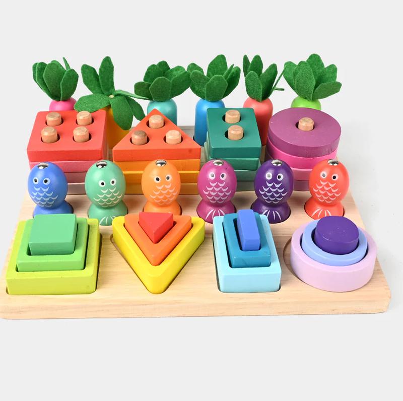 Обучающий набор для самых маленьких: деревянный сортер 4 в 1, магнитная рыбалка, морковки...