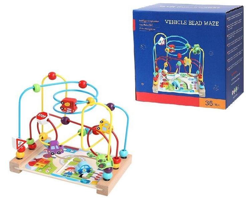 Пальчиковый лабиринт c 75528 деревянный, бусинки, машинки, в коробке