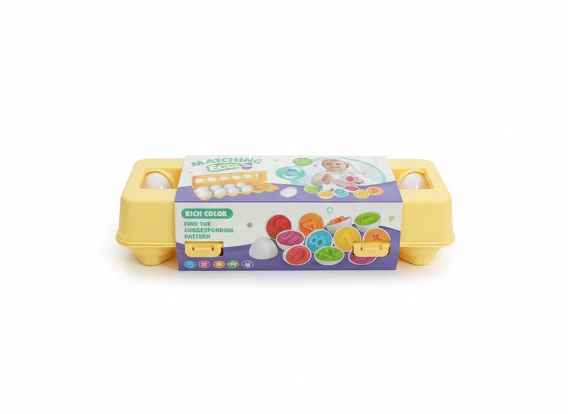Гра для сортування. Ідеальна імітація яєць і паковання. Ігровий набір містить: 12 яєць (24 половинки) з 12 цифрами в 6 кольорах. Розмір яйця: 6*4,5 смРозмір лотка: 29*10*7 см'яйця розбираються на 2 половини (6 кольорів 12* предметов). Кожне яйце зроблене так, що дає змогу дитині їх легко розбирати і складати.