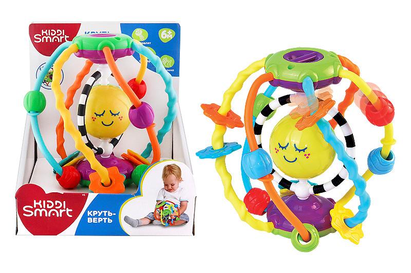 Пориньте у захопливе дослідження разом з малюком із розвиваючою іграшкою КРУТЬ-ВЕРТЬ! Іграшка знайомить з формами, звуками і кольорами, що сприяє емоційному, розумовому та фізичному розвитку малюка протягом перших двох років життя. Зверху іграшки є поворотна ручка, яка видає звуки «клік-клік», що сприяє розвитку сенсорики і слухового сприйняття. На вигнутих і спіральних дугах розташовані рухомі барвисті намистинки: кульки та кільця у вигляді квіточок для розвитку моторики. Матові й глянсові елементи іграшки знайомлять малюка з різними текстурами. Якщо перевернути іграшку кульки й кільця кумедно скотяться з м’яким торохкотливим звуком. Обертове кільце у чорно-білу смужку тренує концентрацію уваги. Велика жовто-зелена кулька знайомить малюка з емоціями: спокійний та веселий. Лишень злегка покрутіть кульку пальчиком і пограйте у цікаві вирази! Знизу іграшки є безпечне дзеркальце, у якому малюк може побачити себе. Завдяки об’ємному та легкому дизайну дитині буде зручно хапати, роздивлятись і гратись іграшкою. До комплекту входить: Розвиваюча іграшка «Круть-Верть». Іграшка дарує приємні емоції, забезпечує візуальну стимуляцію і допомагає розвинути: сенсорику концентрацію уваги дрібну моторику. Розмір іграшки: 13х13х15 см. Kiddi Smart — ваш іграшковий експерт! Рекомендовано для дітей віком від 6 місяців.