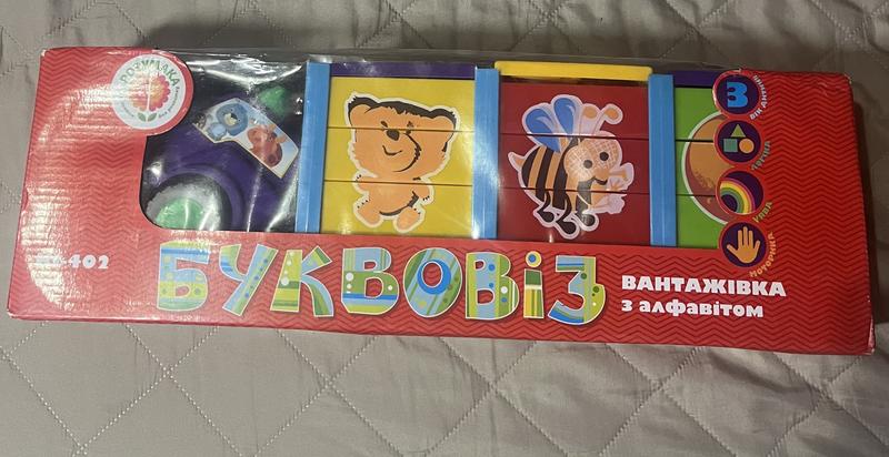 Вантажівка з алфавітом для дітей, із різноманітними малюнками з тваринами , та фігурками. Іграшка абсолютно нова, але трішки пошкоджене упакування