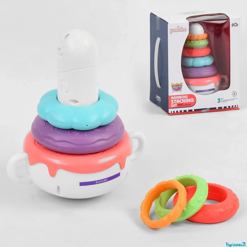 Дитяча пірамідка RT 663 це чудовий варіант розвиваючої гри для найменших. Пірамідка налічує 5 кілець різного діаметру. Кожна каблучка оснащена вилитими елементами декору, які стимулюють тактильні відчуття. Пірамідка оснащена звуковими ефектами, а основа пірамідки – неваляшка. Ефекти працюють від 2-х батарейок типу "ААА" 1.5V (не входять до комплекту). Розмір упаковки 18 см × 13 см × 22 см