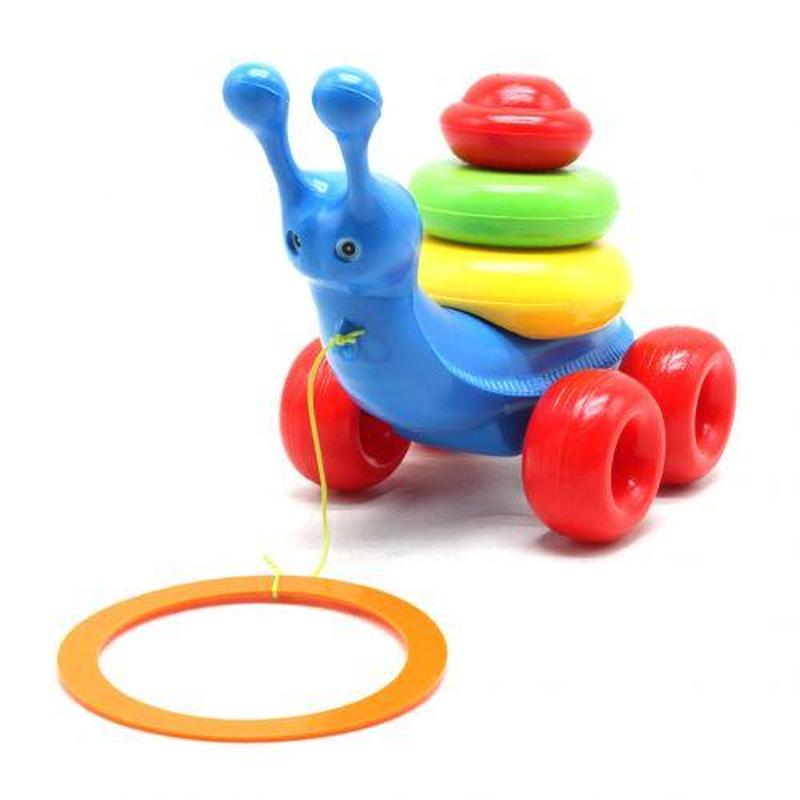 Развивающая игрушка "Улитка". Забавная пластиковая игрушка на колесиках. На спине у улитки находится пирамидка, состоящая из 3-х деталей. Также, есть ободочок, который можно набрасывать на шею улитке во время движения. Размер игрушки - 20х20х16 см. Выполнен из качественного пластика. Достаточно крупные детали._ Бренд: TIGRES Упаковка: Сетка Цвет: Разноцветный Вес в упаковке: 185 г Габариты в упаковке: 18 x 21 x 20 см Cтрана производитель: Украина Материал: Пластик Комплектация: Улитка, пирамидка, ободок