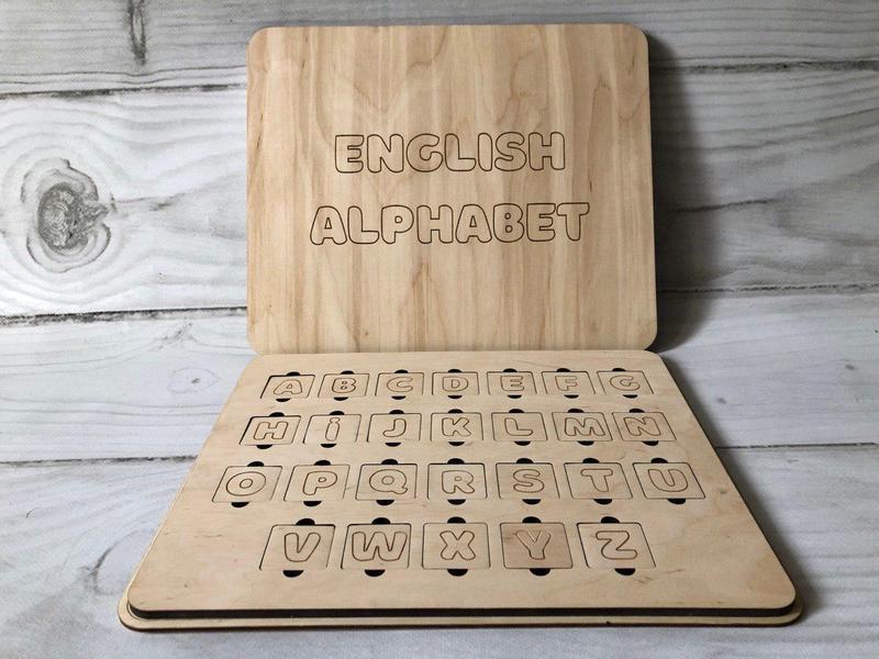 Англійська розвиваючий алфавіт з гравіюванням в упаковці 35Х29 см Вік: 2+ роки, розмір ширина 35 см, висота 29 см, виготовлене з фанери 6 мм і 4 мм товщини. Всі букви нанесені гравіюванням у два ряди,вони ніколи не зітруться і не зблякнуть. Розвиваються якості: дрібна моторика, увага, логічне мислення, мова. Родители во всем мире уже многие годы доверяют эко-игрушкам, в особенности изделиям из натурального дерева. Наибольшей популярностью среди них пользуются развивающие игрушки, в частности деревянные сортери. Которые, кстати, являются отличными помощниками в изучении алфавита. Учить буквы и цифры с ними становится гораздо проще, веселее и интереснее. Алфавит представляет собой деревянную планшетку с буквами-вкладышами, которые легко извлекаются. Планшетка изготовлена из натурального дерева без добавления лаков и красок, она совершенно безвредна и безопасна для ребенка. Внимание!! Алфавит компании StudioN мы сделали с крышкой,наш алфавит живет в своем домике,он ложится спать и укрывается одеялом,всегда в порядке все буковки, и на своих местах.Все углы скругленные и не опасно ребенку для пальчиков,все отшлифовано идеально,запах дерева несет в себе часть природы в ваш дом. Перевернув крышку , на ней можно как на поддоне складывать слова,и так как есть бортик буковки не улетят и не потеряются, так же есть для удобства вытягивания из планшетки букв, два места для захвата пальцами букв, что очень удобно даже взрослому. Діти вчаться бути охайними і берегти свої речі з дитячих років. Алфавіт -це відмінний подарунок , і іграшка не на один день. Ми дуже сподіваємося, що наше творіння сподобається і полюбиться вами.