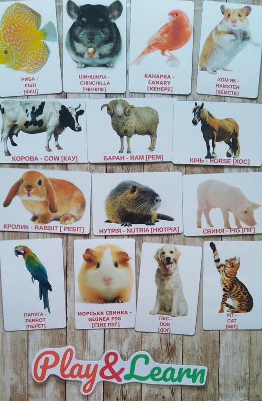 Картки домана двомовні домашні та свійські тварини
