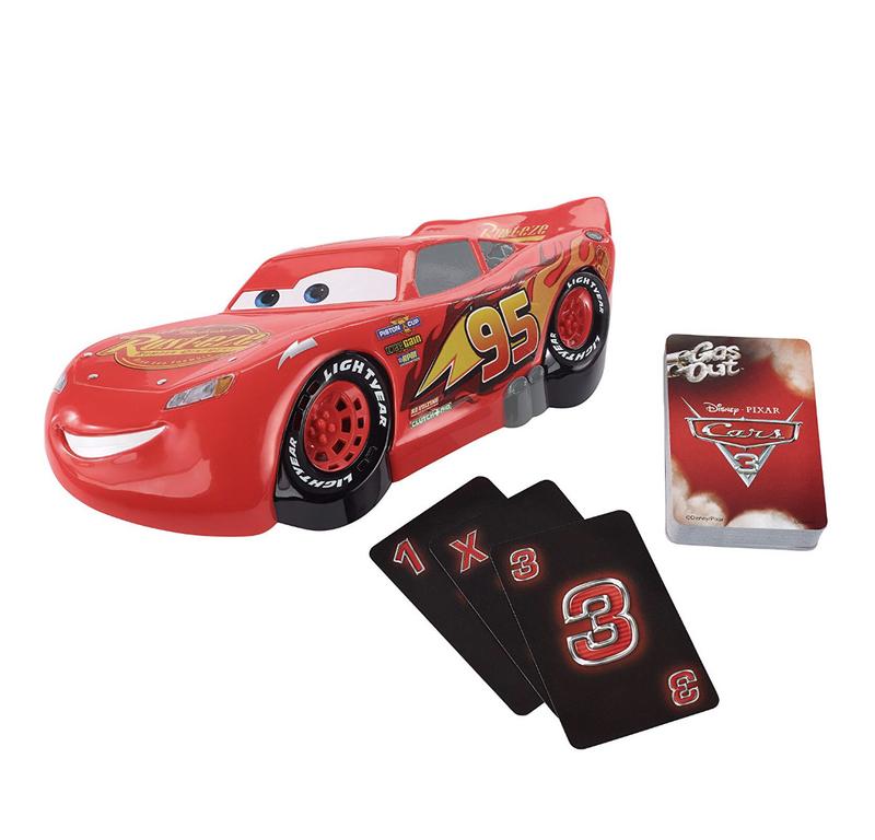 Настольная игра Gas Out Тачки 3 сочетает оригинальную игру Gas Out и твоего любимого героя — Молнию МакКуина. Молния МакКуин готов газовать! Как долго он продержится, чтобы ни с кем не столкнуться? Клади карту, нажимай на молнии соответствии с количеством цифр, изображенных на карточке. Если услышишь звук столкновения — ты вылетел! В наборе есть две эксклюзивные карты: "Перемещение" и "Кольцо". Используй карту "Перемещение", чтобы все передали свои карты следующему игроку по кругу; или карту "Кольцо", чтобы каждый игрок по очереди нажимал на МакКуина, пока кто-то не выбудет с игры! Побеждает тот, кто последний остался в игре! В комплект игры входит электронный генератор звука МакКуин и 56 игральных карт, 2 из которых эксклюзивны.