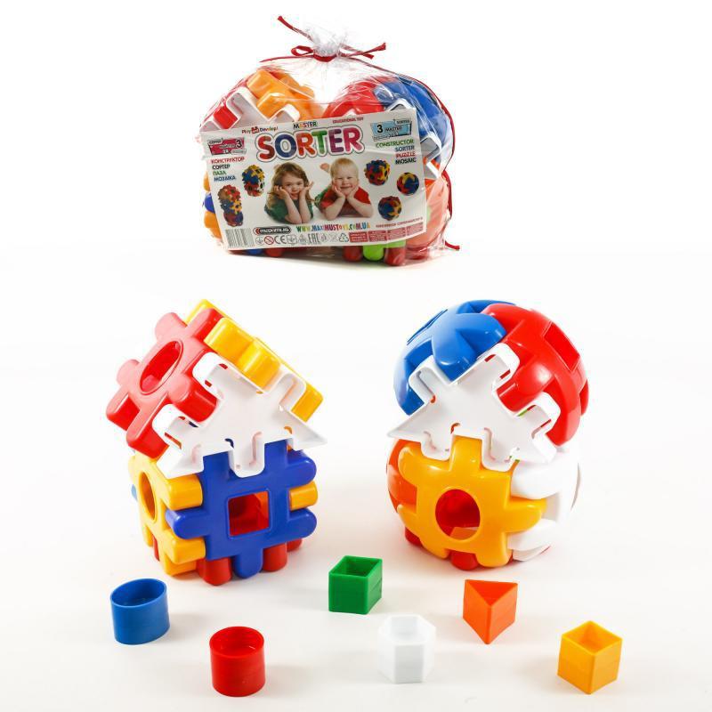 Яркая пластиковая игрушка для малышей. Малыш должен поместить каждую деталь в отверстие соответствующей формы. Игрушка выполнена очень качественно. У нее нет острых углов. Для производства изделия использован нетоксичный пластик. Упаковка: кулек.