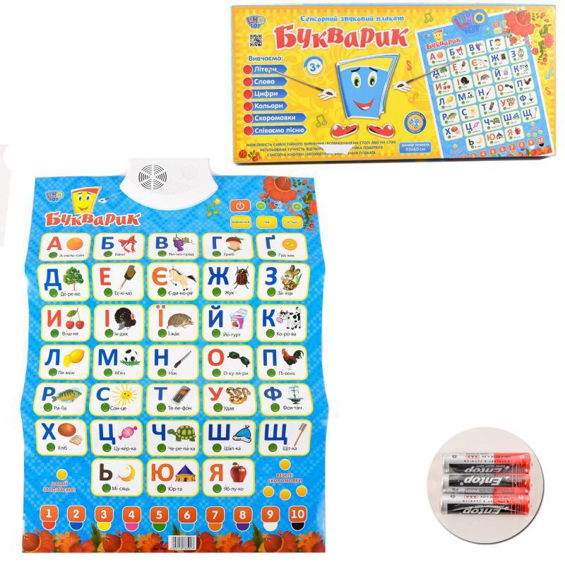 Материал: комбинированый Вид упаковки: в коробке Обучает: буквам, цифрам, цветам, скороговоркам. Тип питания: на батарейке