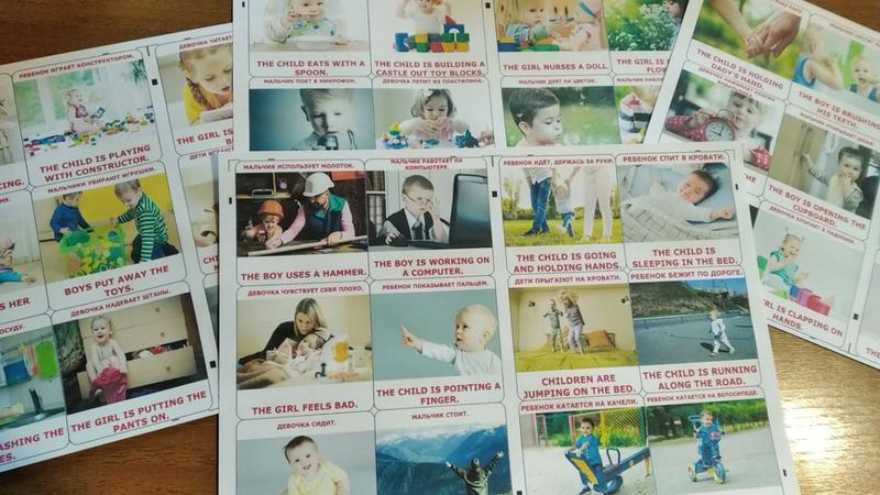Плакат складається з 4 ламінованих частин у форматі А4. Кожна ламінована частина містить 12 елементів. Мова підписів зображень: українська-англійська. Плакати можна прикріпити на будь-яку поверхню використовуючи двосторонній скотч (не йде в комплекті) або займатись безпосередньо без прикріплення плаката.