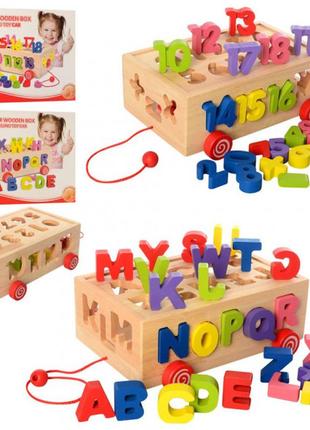 є два види, букви та цифри Деревянная игрушка Сортер MD 2422 каталка Деревянная игра Сортер MD 2422 - увлекательная развивающая игрушка, которая поможет ребенку в изучении цветов, счёта, геометрических фигур. Игрушка качественная, прочная, яркая, абсолютно безопасная, не имеет запаха. С такой игрой ребенок будет развивать моторику, логическое мышление, учить цвета, фигуры, счет. Характеристики Вес товара 0 Габариты: длина 10 Габариты: ширина 25 Габариты: высота 19.5 Разновидность Буквы Материал Комбинированный Тип Сортер Возрастная группа От 3 лет