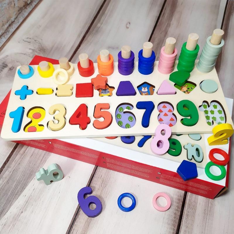 Дитячий дерев'яний математичний сортер 3 в 1, логічна дошка з вкладками цифри