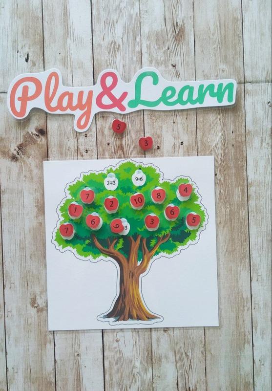 Порахуй та прикріпи яблучко з відповіддю Гра на липучках 18 деталей на липучках. Кожна деталь містить додаткове захисне поле ламінації. Гра водостійка