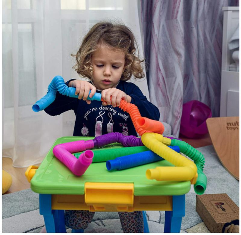 Набір з 5 іграшок для дітей POP Tubes - яскраві кольорові трубки легко з'єднуються разом, як блоки лого, даючи вашим малюкам свободу досліджувати власні дизайни та програми; навчить дітей буквам і формам за допомогою цієї розвивальної іграшки-стержя і допоможіть малюкам покращити свої моторні навички; Зниження стресу для дорослих — без жартів, дайте дорослому трубку та перетворіть його на дитину, яка не відпускає свою нову іграшку та продовжує її лопать і шуміти; Pop Tube виготовлені з високоякісного БФА та нешкідливого пластику відповідно до найвищих стандартів якості, і спроєктовані в такий спосіб, щоб витримувати масу рухів, бавовн, розтягувань, витягування або вигинів завдяки міцному матеріалу. Особливості: - Сенсорний розвиток. - Емоційний розвиток. - Підвищує концентрацію уваги. - винахідливість. - Дрібну моторику. - Мислення. - Навички конструювання - Творчі здібності. Характеристики: - Матеріал: пластик; - Вік: від 3 років;