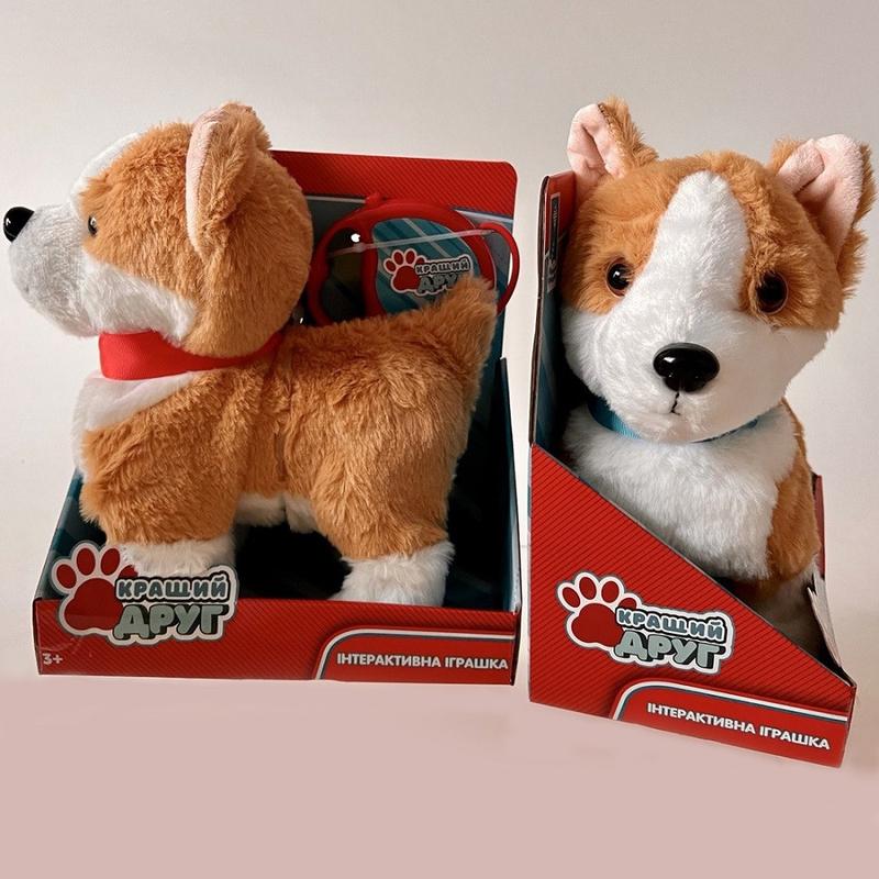 Іграшка собачка ходить і гавкає на повідці коргі м'яка інтерактивна іграшка