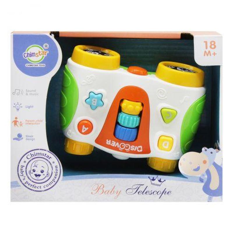 Увлекательная игрушка в виде бинокля. Оснащена подсветкой и звуковыми эффектами: A - различные мелодии, B - звуки природы, C - звуки животных и D - мультяшные звуки. Также у бинокля есть подвижные детальки, которые способствуют развитию мелкой моторики. Игрушка выполнена в виде бинокля, но посмотреть в него нельзя. Изготовлена из качественных и безопасных материалов. Работает на батарейках (не идут в комплекте). Для малышей от 18-ти месяцев._ Бренд: Chimstar Упаковка: Коробка Цвет: Разноцветный Тип эл-тов питания: Батарейки (АА) Кол-во эл-тов питания: 2 Эл-ты питания в комплекте: Нет Вес в упаковке: 225 г Габариты в упаковке: 16 x 20 x 6.5 см Габариты без упаковки: 14 x 11 x 5.5 см Cтрана производитель: Китай Материал: Пластик Комплектация: Бинокль