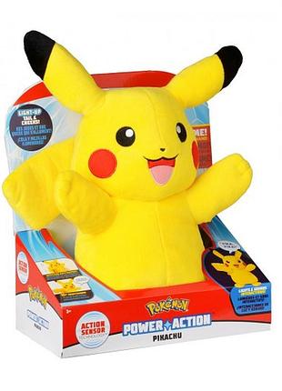 Зустрічайте улюблених героїв популярної світової ліцензії Pokemon! Інтерактивна м'яка іграшка POKEMON - ПІКАЧУ стане найкращим другом Вашого малюка! Адже він не тільки м'якенький та гарненький, а й має більше 20-ти інтерактивних реакцій для веселої гри. - Якщо натиснути на лапки та животик іграшки, хвостик і щічки будуть світитися. - Ви почуєте улюблену фразу: «Піка, Піка!». - Оснащений вбудованим сенсором - потрясіть іграшку, щоб почути звук заряду Пікачу. - Такий кумедний і м'який, створений для обіймів. - Усього 20 різних звукових ефектів. - Висота іграшки - 25 см. Для роботи потребує 3 батарейки ААА (входять до комплекту). Рекомендовано для дітей віком від 3 років.