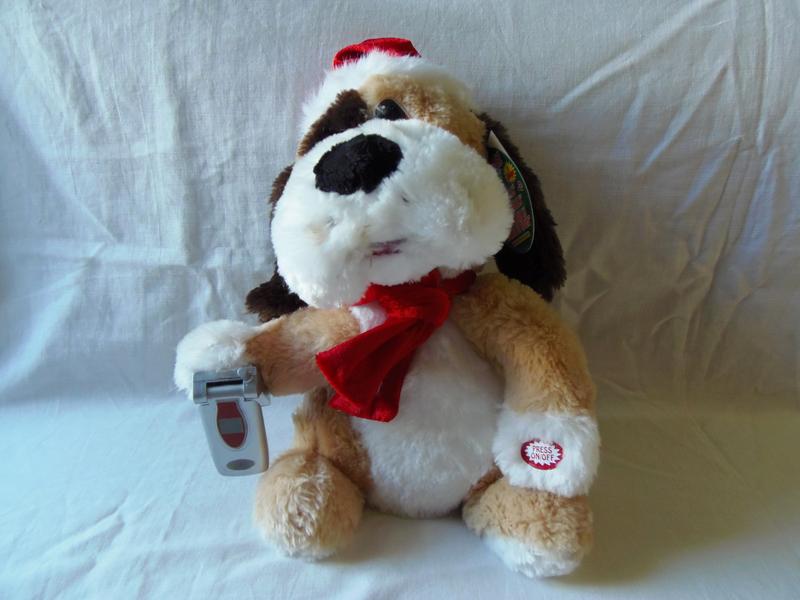 м'яка музична іграшка собака нова з біркою, співає 3 новорічні пісні, відкриває і закриває телефон, відкривається рот і собака хитається з боку на бік. З нюансів спереду трохи замазано біля ротика, на фото показано висота 25см, ширина 18см відправка після оплати