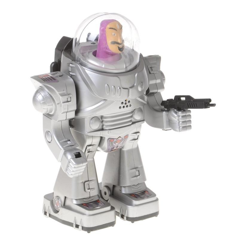 Цікавий робот, з людським обличчям і в скафандрі. Справжній прибулець з іншої планети! Може пересуватися в просторі, видавати різні звуки і світитися різнокольоровими вогнями. Така іграшка підійде для різних рольових ігор і надовго захопить вашу дитину. За допомогою роботів діти не тільки вчаться рольових ігор і розвивають уяву. Роботи – це науково-фантастичні персонажі. Граючи з ними, дитина розвине свій світогляд: можливо, комусь захочеться розібратися в астрономії, хтось захопиться читанням. А якщо розглядати робота як іграшку – це маса різних ігор з улюбленим героєм.