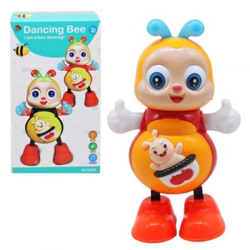 Яркая музыкальная игрушка в виде пчелки, которая исполняет динамичный танец в такт веселой музыке. Игрушка выполнена в ярком, интересном дизайне. При включении, ручки и усики начинают светиться разными цветами, а глазки двигаются в разные стороны. Размер игрушки: 21х13х12 см. Выполнено из качественных и прочных материалов. Работает от 3-х батареек АА.