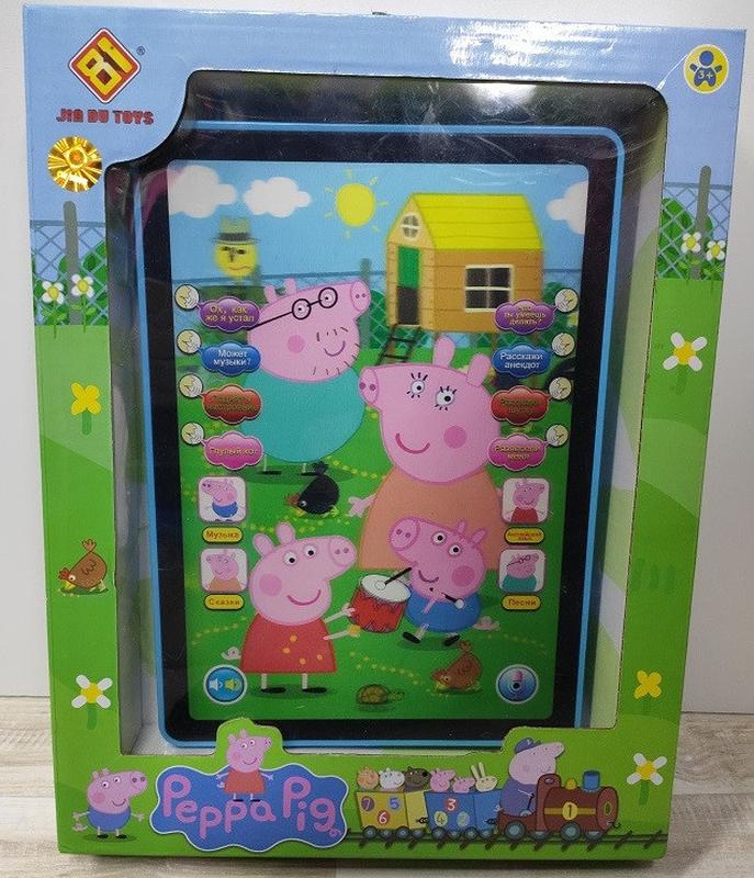 Дитячий іграшковий планшет -- це чудова для тих батьків, які не хоча б, щоб дитина весь день сиділа в ґаджетах, але мав свій, який у будь-якому разі зробить малюка щасливим, тому що планшет , як сьогодення. На телефоні заставка з улюбленого мультика Свинки Пеппи. Планшет інтерактивний - навчальний музичний планшет співає Вашій дитині пісні, розповість казки, відтворить слова англійською мовою та переведе їх російською мовою. Має функцію "Півторюшка". Під час натискання на кнопку Вмик/ВИМИК телефон почне відтворення інших аудіофайлів. У іграшкового смартфона є безліч функцій: -Вибірне або безперервне відтворення казки музика Англійська мова пісні гучність (є кнопка регулювання). мікрофон незвичайний підбивач