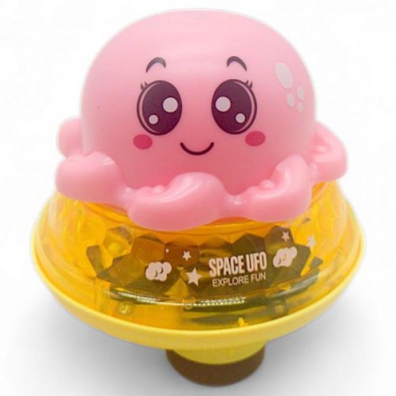 Чудова іграшка 2в1, яка розважатиме малюків як у дитячій кімнаті, так і під час водних процедур. Її унікальність полягає в тому, що вона складається з двох частин, під час поєднання яких іграшка починає рухатися в довільному напрямку під звучання веселої музики та в супроводі яскравої підсвітки. Розділивши верхню частину, виріб перетворюється на кумедну гру для ванни, яка мило розбризкує води, плаваючи поверхнею. Іграшка має яскраве підсвічування платформи та динамічну музику. Платформа починає працювати в момент встановлення на неї верхньої частини. А для того, щоб осініжок почав пускати воду. необхідно поставити його на водяну поверхню. Платформа працює від 3 батарейок "АА", а восьминіг — від 3 батарейок "ААА". Рекомендовано для дітей віком від 3 років.