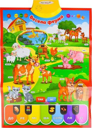 Дитячий інтерактивний плакат весела ферма українською мовою — вивчення тварин і нот, країн...