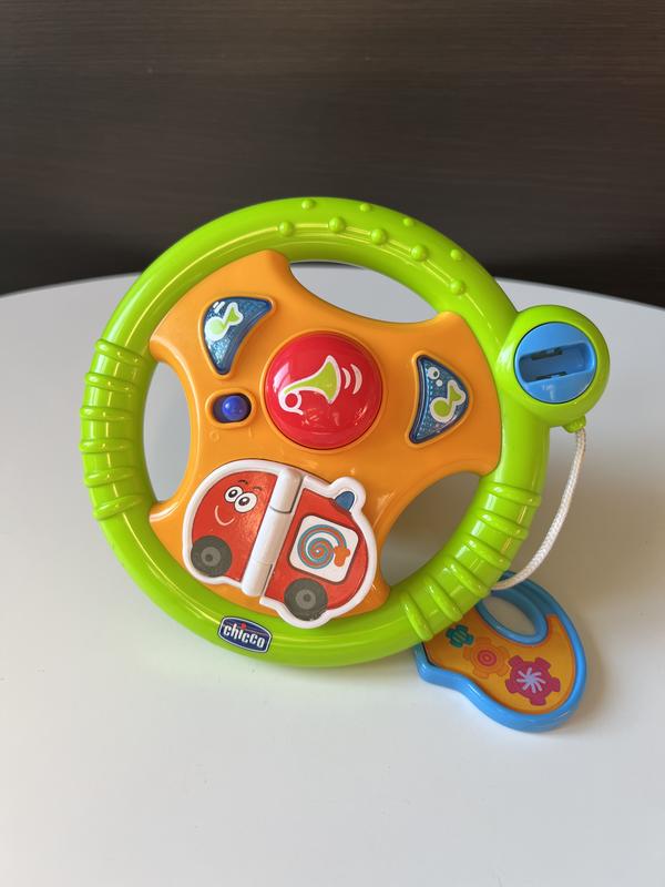 Інтерактивне Кермо на коляску Малецький водій Chicco – чудовий подарунок для вашої крихти, за допомогою якої він керуватиме життям з перших днів! Забавна розвиваюча іграшка від італійського бренду Chicco. Яскрава іграшка для коляски у вигляді автомобільного керма приведе у захват юних автолюбителів. Характеристики: З дитячою іграшкою Chicco Маленький водій ваш малюк зможе відчути себе справжнім водієм і захоплено керуватиме коляскою. Поворот керма запускає цілу низку найрізноманітніших мелодій. Під час повороту ключа іграшка Chicco Маленький водій починає видавати звуки запуску двигуна. Анімовані м’які листи книжечки допоможуть дитині дізнатися про звуки рятувальних машин. Так, наприклад, натиснувши на пожежну чи поліцейську машини, дитина зможе почути їхні сирени та сигнали. На краю керма розташований клаксон, що теж видає звук, варто на нього лише натиснути. При опусканні та піднятті важеля поворотників – починають моргати стрілки та грає музика. Іграшка озвучена 5 мелодіями та 9 звуковими ефектами. Інтрерактивне Кермо додатково забезпечене яскравими світловими ефектами. Стан дуже гарний (без кріплення на коляску). Ціна 229 грн.🏷️