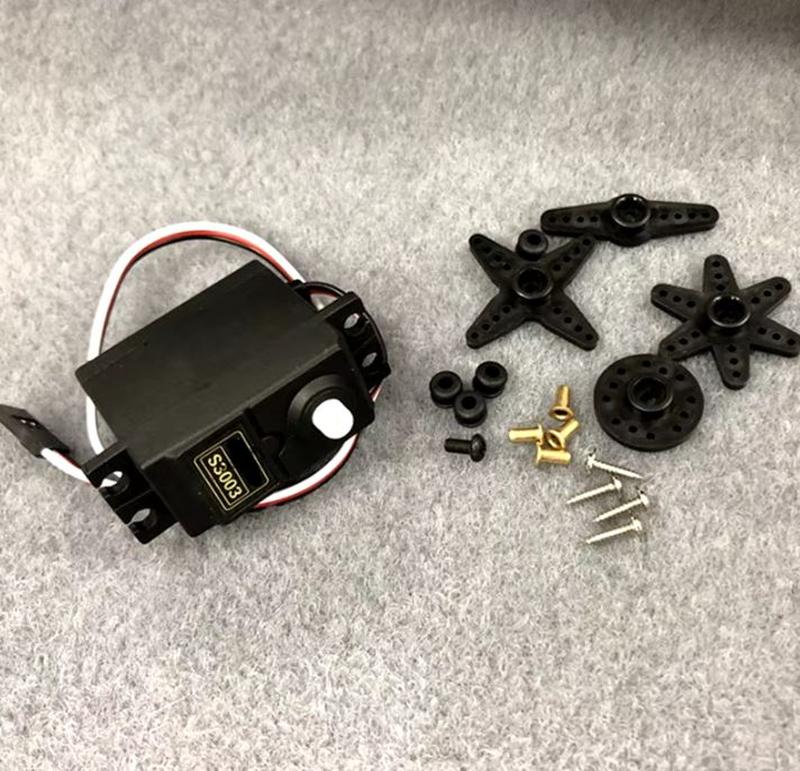 Сервопривод S3003 для электрических моделей самолетов Характеристики: Рабочее напряжение: 4,8 - 6.0 В. Угол поворота: 180 градусов (влево-вправо на 90 градусов). Рабочий крутящий момент: 3,2 кг/см при 4,8 В или 4,1 кг/см при 6,0 В. Скорость работы: 0,23 секунды / 60 градусов при 4,8 В или 0,19 секунды / 60 градусов при 6,0 В. Материал зубьев: пластиковые зубья. Длина кабеля: примерно 300 мм. Размеры (Д*Ш*В): приблизительно 44 x 20 x 40 мм. Вес: примерно 37 г. Комплектация: - сервопривод S3003 x 1, - монтажный комплект x 1.