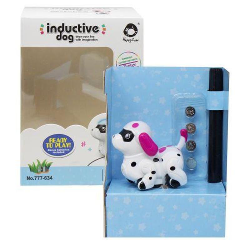 Інтерактивная індуктивна іграшка у вигляді собаки-робота. Головна особливість іграшки - це те, що вона їде сама по намальованому Вами шляху. Для створення маршруту знадобиться лише маркер (є в наборі) та звичайний аркуш паперу (бажано формату А4 чи більше). Зі світловими ефектами. Бренд: Happy Cow Паковання: Коробка Колір: Білий Тип ел-тів живлення: Батарейки (AG13) Кількість ел-тів живлення: 4 Ел-ти живлення в комплекті: Так Вага з упаковкою: 165 г Габарити в упаковці: 7.5 x 17.5 x 12.5 см Габарити без упаковки: 6.5 x 7.5 x 4.5 см Країна виробник: Китай Матеріал: Пластик Комплектація: Собачка, маркер, лист
