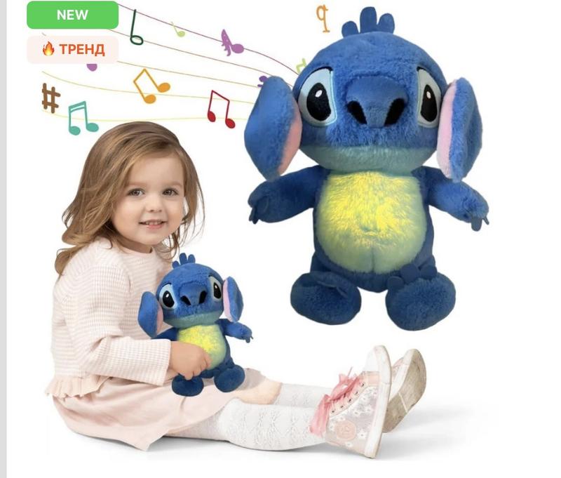 Стич дышит, светится, играют мелодии, имеет подвижные ушки