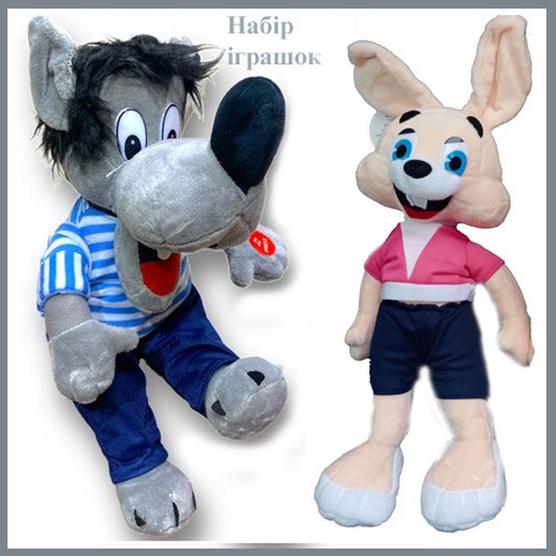 Ну погоди Заєць і Вовк набір музичних м'яких іграшок озвучені російською мовою. Вовк іграшка м'яка музична 32 см і Заєць заввишки 35 см.