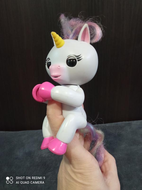 маленькая ручная единорожка, на пальчик, издает различные звуки, крутит головой
