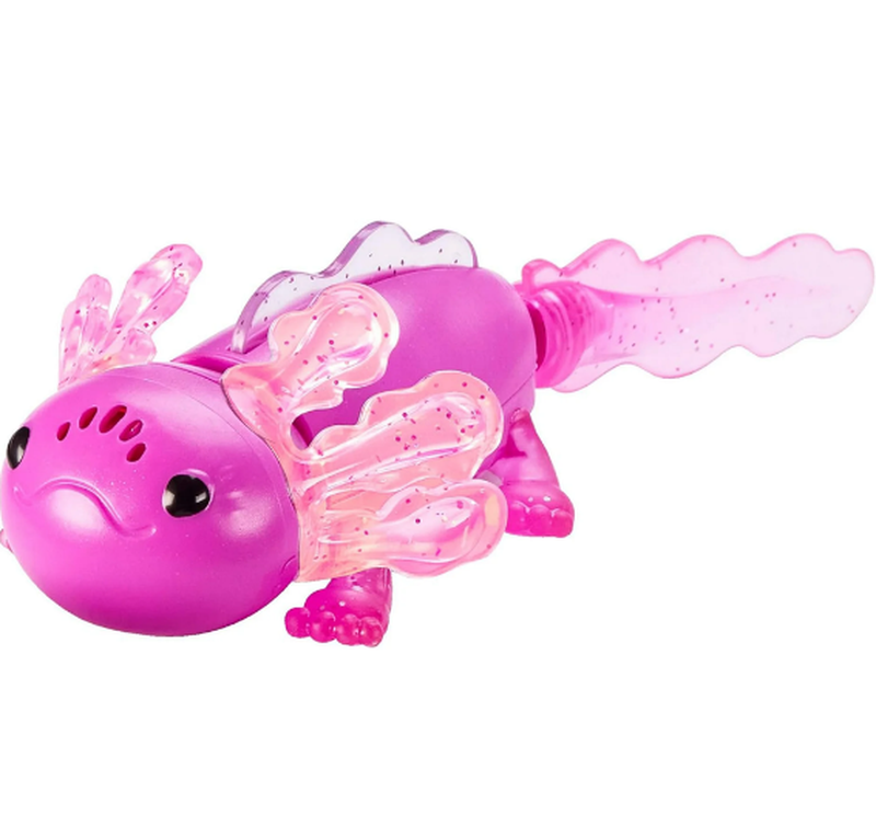 Пориньте у чарівний новий світ дружби з малюком аксолотля від Fingerlings! Зіггі, чарівний інтерактивний малюк аксолотля, справді плаває та світиться у воді. Він навіть може вгадати ваш настрій! Спостерігайте, як ваш малюк аксолотля плаває в мисці, акваріумі чи басейні! Уникайте солоної або брудної води. Зіггі має гарний пурпурово-рожевий колір з блискучими зябрами, які світяться всіма кольорами веселки під час плавання. Ваш аксолотль має сенсори, які одразу виявляють, коли він у воді, тому він автоматично починає плавати. Коли ви граєтеся зі своїм аксолотлем поза водою, він дійсно знає, що це ви, і хоче бути вашим другом! Візьміть свого аксолотля в руку, щоб побачити, як він виляє хвостом із веселими вогнями та звуками. Ваш аксолотль також може розповісти вам про ваш настрій! Постукайте по його голові, і колір його вогнів підкаже вам, коли ви почуваєтеся щасливими, сонними або навіть божевільними! З вашої руки ваш аксолотль навіть заспіває вам пісеньку. Ідеально підходить для дітей віком від 5 років.