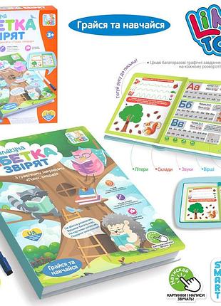 🦉ІНТЕРАКТИВНА БАЛАКУЧА АБЕТКА ЗВІРЯТ 🦉 Якщо Ви бажаєте щоб Ваша дитина 👧 🧒 познайомилась зі «світом літер», тоді ця книга саме для Вас ! Дитина 👧 🧒 зможе займатись з нею без допомоги дорослих❤️ Книга сама промовляє літери, звуки, слова, вірші та склади 😍 Маленькому учню треба лише натискати на кнопки 📌 В комплекті маркер 🖊️ та багаторазові графічні завдання пиши ✍️ та стирай на кожному розвороті 😉 Кожну сторінку потрібно активовувати натискаючи на зірку⭐️ Слухай віршики про кожну літеру 🔠 3️⃣ веселі пісні 🎵 про абетку Матеріал : Виробник : -