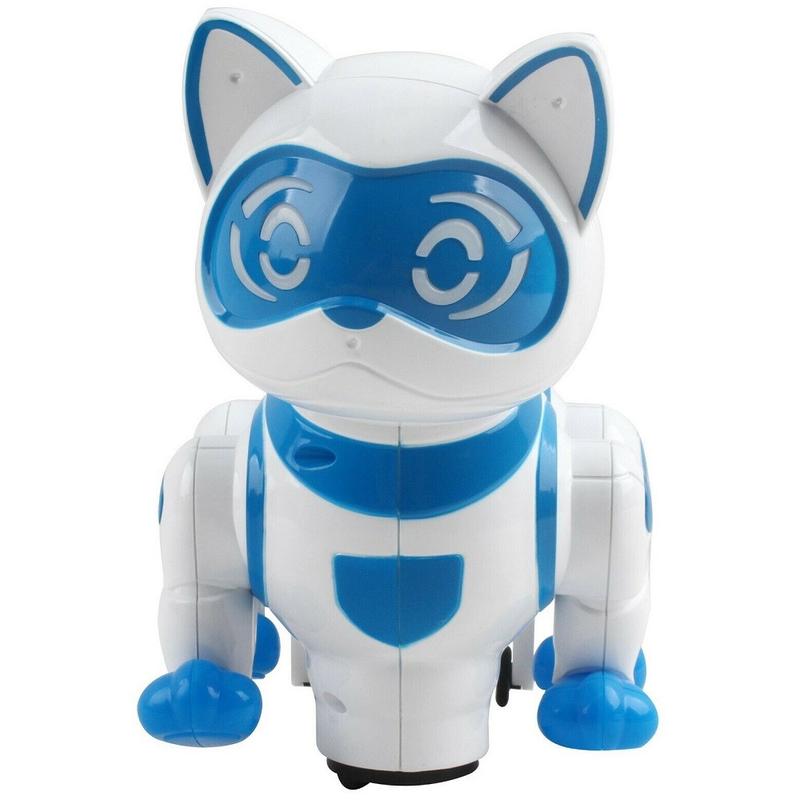 Робот кіт вміє їздити колом під музику, світяться очі та м'якує під час гри. Під час руху перебирає лапками. Садиться на задні лапки та встає. Рухається в усі боки, обладнана центральним колесом. Під час зіткнення з перешкодами розгортається і рухається в іншу сторону. Працює від 3 батарейок типу АА (не входять до комплекту). Розмір іграшки 18 * 12 * 20 см. Розмір коробки 23 * 14 * 23 см.