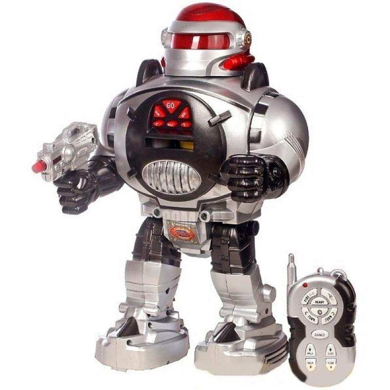 Робот говорит 8 фраз на английском языке. Умеет танцевать, ходить вперед и назад, скользит, вращаться вокруг своей оси. В правой руке у него находится бластер. Рука с бластером может подниматься и опускаться. Управляется с пульта дистанционного управления или с панели на самом роботе. Робота можно запрограммировать на последовательность действий. Присутствуют световые и звуковые эффекты. И плюс ко всему он стреляет мягкими поролоновыми дисками которые загружаются через верхнюю часть робота. Робот работает от 4 батареек типа AA и пульт от 2 тоже типа AA (в комплект не входят). Размер робота 20 * 12 * 31 см. Размер коробки 21 * 14 * 32 см.