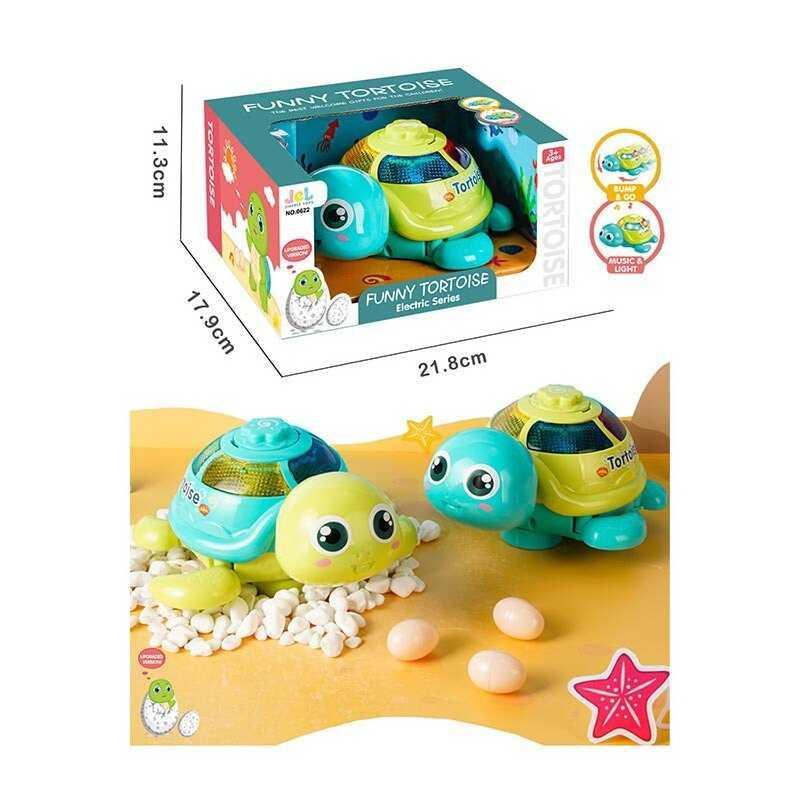 Інтерактивна черепашка "Кольоровий Світ" з підсвіткою та звуковими ефектами Зустрічайте яскраву і захоплюючу інтерактивну іграшку, яка неодмінно завоює серце вашого малюка! Ця черепашка стане його новим вірним другом, даруючи багато веселощів та радості. Особливості: - Відповідає всім стандартам безпеки іграшок. - Виготовлена з високоякісних полімерів для довговічності. - Доступна у двох яскравих колірних варіантах. - Набір включає інтерактивну черепашку та три пластикові яйця. - Може відтворювати мелодії, рухатися завдяки колесам та світитися. - Механізм відкладає яйця, як справжня черепаха! - Увімкнення здійснюється кнопкою на животі черепашки. - Працює від трьох батарейок типу AA. Ця весела черепашка урізноманітнить ігри вашого малюка, подарує йому чудовий настрій і не залишить байдужим. Її панцир має спеціальний люк для яєць, що розвиває сенсорні здібності, увагу та дрібну моторику завдяки звуковим і світловим ефектам. Комплектація: - Інтерактивна черепашка - Три яйця