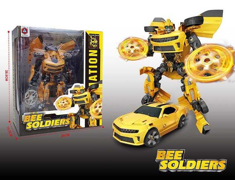 Унікальний трансформер HD 33 Цей трансформер HD33 Bee Soldiers — це яскравий і захоплюючий іграшковий робот, який може перетворюватися з гоночного автомобіля у бойового робота. Автомобіль має насичений жовтий колір з чорними смугами на даху, що надає йому спортивного вигляду. Трансформація відбувається легко і швидко — всього за 5 простих кроків. У комплекті йдуть дві спеціальні зброї у вигляді обертових зірок, що додають грі більше динаміки та інтересу. - Яскравий дизайн жовтого гоночного автомобіля - Проста п’ятиступенева трансформація - Дві спеціальні зброї у комплекті - Захоплююча модель для фанатів трансформерів