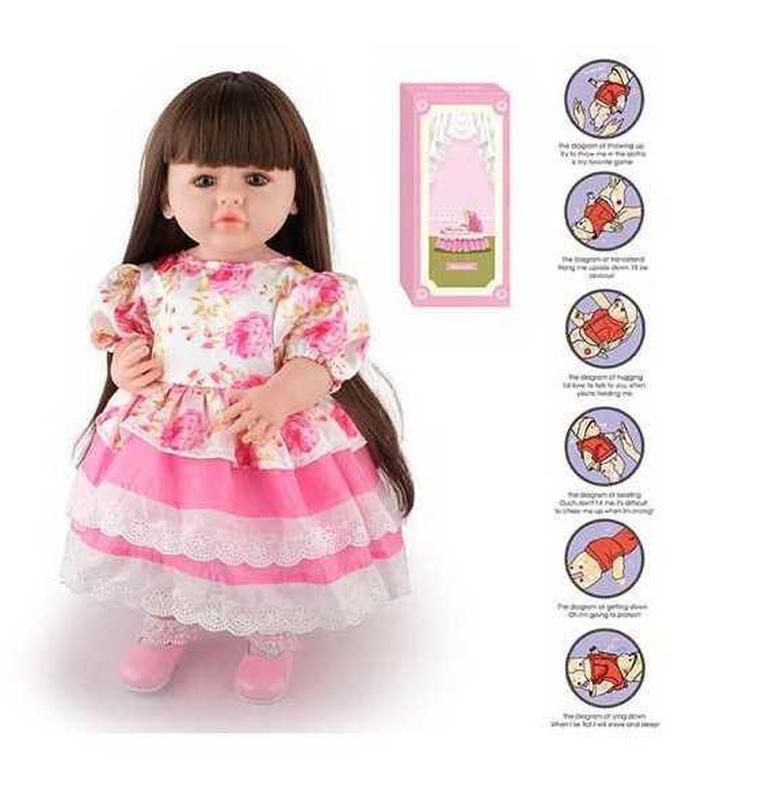 Реалістична інтерактивна лялька для розвитку дитини Ця лялька висотою 52 см виготовлена з м’якої гуми і оснащена функціональним модулем зі звуковими ефектами, що реагують на зміну положення. Вона має густе довге прошите волосся, яке дозволить дитині розвивати навички плетіння та створення зачісок. У комплекті йдуть різноманітні аксесуари для догляду: памперс, пляшечка, магнітна пустушка, взуття, шкарпетки та декоративна стрічка, яку можна використовувати як шарф. - Висота ляльки: 52 см - Функціональний інтерактивний звуковий модуль на спинці - Працює від 3 батарейок типу "АА" (не входять у комплект) - М’яка гума та рухливі кінцівки для реалістичності - Прошите довге волосся для творчої гри - Комплект аксесуарів для догляду за лялькою