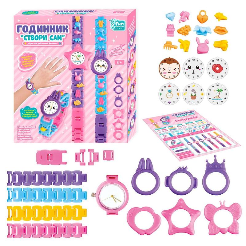 Для маленьких любителей планировать свое время и создавать что-то своими руками отлично подойдет этот креативный набор для создания часов. Наручные часы — это не только об определении времени и правильном планировании своего дня, но и о выражении своей индивидуальности. И с этим набором можно создать часы по своему неповторимому вкусу — выбрать цветовое сочетание браслета, дополнить их украшениями, а в зависимости от настроения выбрать уникальную окраску для циферблата. Поэтому берите с собой фантазию, свой неповторимый вкус и выбирайте то, что больше всего подойдет вам. Особенности: набор позволяет создать часы своими руками; для создания часов добавляются цветные элементы для браслета, циферблат, 6 корпусов для циферблата и накладки, различные аксессуары; к набору прилагается пошаговая инструкция по созданию часов; по желанию можно создать браслет; набор изготовлен из качественного пластика, который безопасен для здоровья ребенка.
