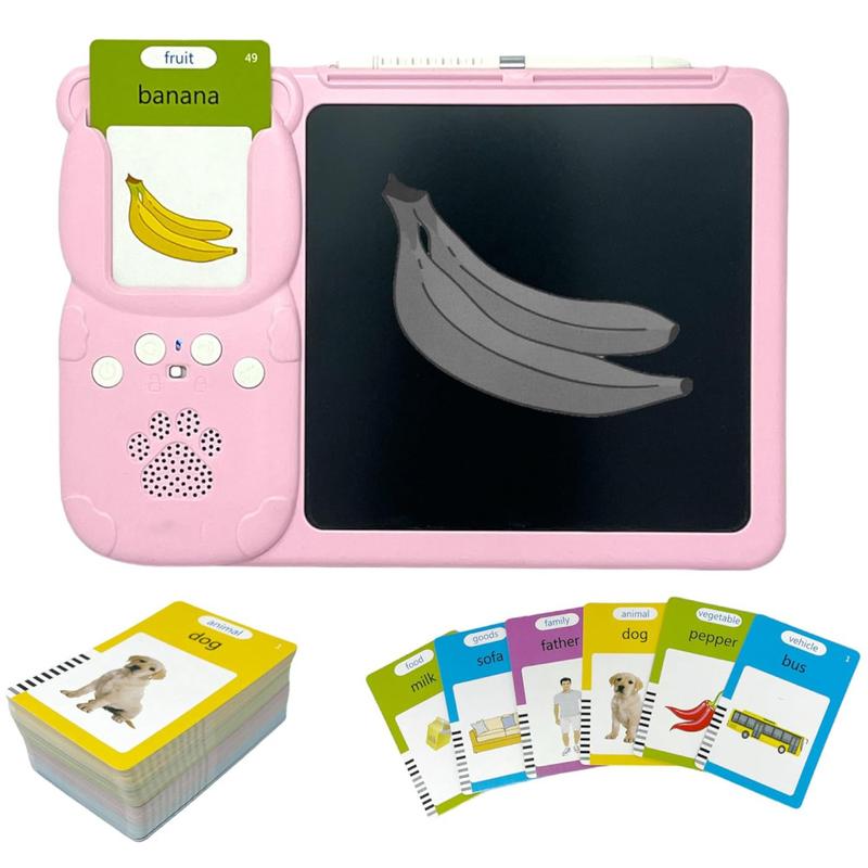 Интерактивный планшет с 112 карточками и доской для рисования + стилус, розовый