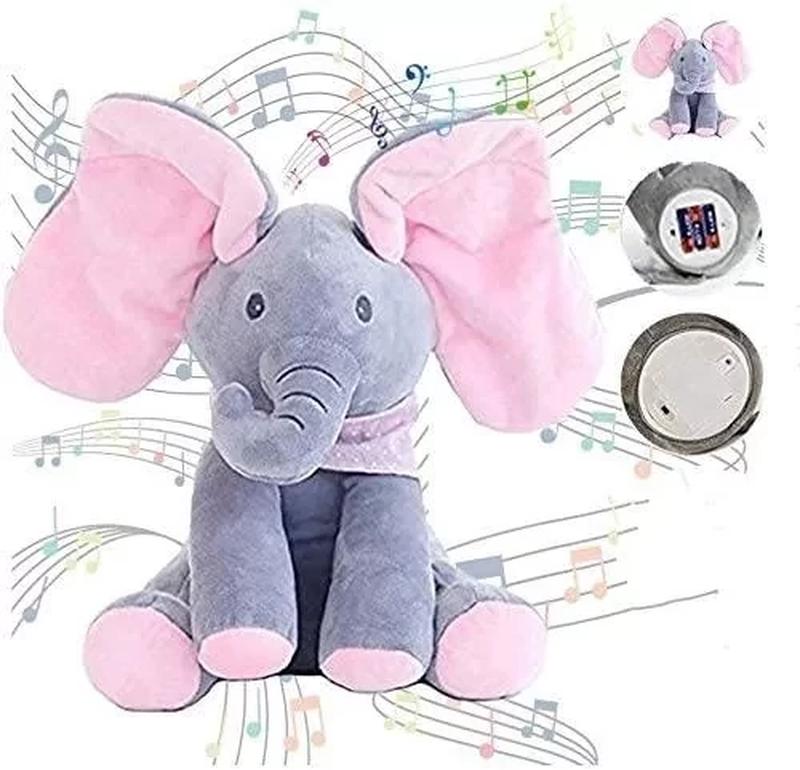 Плюшева іграшка-слон Peekaboo | Інтерактивна іграшка Музична іграшка Познайомтеся з новим найкращим другом для вашого малюка - Слоненя "Peekaboo". Це найприємніша плюшева іграшка у світі В анімовану плюшеву іграшку-слоник можна грати разом із дитиною; Вуха ляскають під час гри, щоб принести задоволення малюкові. Грайте, співайте та вивчайте мову разом, весело для ранньої освіти дітей. Діти можуть не лише грати в милу іграшку з батьками, а й грати самі із собою. Виготовлений із безпечного високоякісного плюшевого матеріалу та наповнювача з поліпропілену. Великі пухнасті вушка і м'яке тіло. Діти можуть грати в анімованого плюшевого слона в двох різних режимах гри. Натисніть ліву ногу, щоб почути пісню. Натисніть праву ногу, щоб грати в інтерактивну гру. Яскравий кольоровий дизайн, чудовий звук зроблять гру ваших дітей ще приємнішою. Характеристики: Матеріал: Плюш + Бавовна Колір: Сірий + Рожевий Розмір: 33х29см Живлення: 3 батареї АА