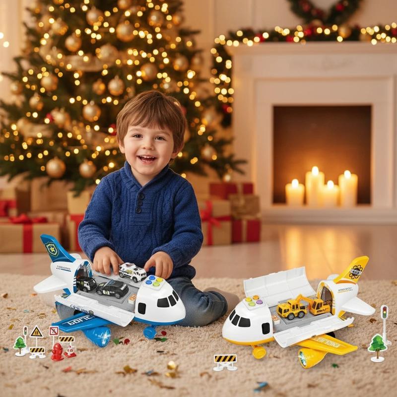 Игрушечный интерактивный самолет инерционный для мальчика со светом и звуком с машинками в...