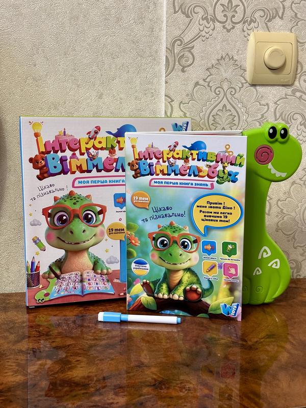 Ця інтерактивна книжка — ідеальний навчальний помічник для малюків, адже вона не тільки захоплююча, а й корисна. Книга має яскравий дизайн і розроблена так, щоб знайомити дитину з основами навчання: абеткою, цифрами, різними видами тварин, професіями та навіть планетами Сонячної системи. Кожна сторінка книжки супроводжується сенсорними кнопками, які відкривають нові захоплюючі теми та інформацію, щоб малюк міг поринути у захопливий процес навчання. Вивчати нові слова, слухати цікаві історії, співати пісні та розгадувати загадки стане ще веселіше з цією книжкою! Особливості: - Озвучення українською мовою. - 19 цікавих тем для навчання. - Сенсорні кнопки для взаємодії з книгою. - Маркер “пиши-витирай” для самостійного навчання та тренування письма. - Режими: “Казки”, “Пісні”, “Корисна інформація”, “Скоромовки”, “Загадки”. - Кожна кнопка має 2 режими: відтворення назви предмета та вірша або цікавої інформації. - Логічні завдання на останніх двох сторінках. - Регулювання гучності. - Працює від 3 батарейок “ААА” (не входять до комплекту). Ця книжка не тільки розважить малюка, а й дасть йому можливість всебічно розвиватися та вивчати нові теми, допомагаючи формувати базові знання в захоплюючій та інтерактивній формі.