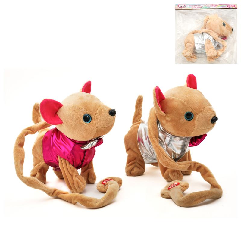Інтерактивна м'яка іграшка "Собачка Кікі", 2 кольори. Музика, звукові ефекти. Самостійно рухається, має довгий хвіст. Живлення - батарейки. Матеріал - плюш, пластик. Паковання — пакет. Розмір - 33х11х30 см.