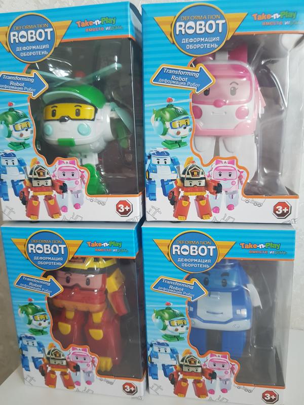 Серія іграшок Трансформер Робокар Полі, 4 види, нові в коробці, висота 11см. Ціна за 1шт. 175грн. - поліцейський автомобіль Полі, який стежить за порядком у місті Брумстаун. - швидка допомога Амбер. - пожежний Рой як справжній пожежник. - вертоліт Хеллі летить у блакитному небі. Іграшка Полі Робокар – усім відома іграшка з відомих мультфільмів. Знамениті герої перетворюються на трансформерів і навпаки. Серія іграшок-трансформерів Robocar Poli – це ціла команда рятувальників, які приходять на допомогу жителям міста Брумстаун. Мультфільм та його герої з перших серій полюбилися дітям за свою відвагу та готовність прийти на допомогу у будь-який момент. Сюжетно-рольові ігри з використанням машинок-трансформерів сприяють розвитку уяви та просторового мислення, дрібної моторики рук вашої дитини, формують грамотну мову. Вам тільки потрібно вибрати свого улюбленця.