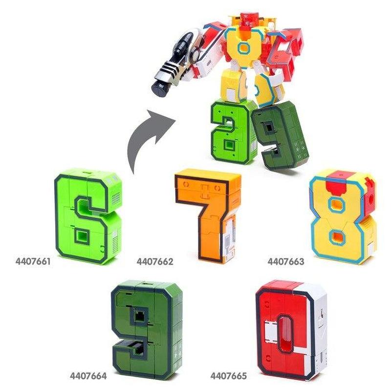 Трансформери цифри 10 різновидів в асортименті Абсолютно нова колекція трансформерів виготовлена в несподіваному стилі -- цифри. До колекції увійшло 10 чисел, кожна з яких трансформується у свій унікальний образ, але це ще не все. Щойно Ви зберете 5 моделей, то їх можна буде об'єднати й отримати повноцінну модельку страхітливого, бойового робота. - Щоб зібрати робота No1, вам будуть потрібні цифри, що стежать: 1, 2, 3, 4, 5. - Щоб зібрати робота No2, вам будуть потрібні такі цифри: 0, 6, 7, 8, 9. Трансформації цифр: - 0 -- пожежна машина; - 1 -- перегоновий автомобіль; - 2 -- винищувач; - 3 -- винищувач; - 4 - вертоліт; - 5 - робот; - 6 - танк; - 7 - танк; - 8 - робот; - 9 - танк. З 10 цифр можна зібрати: 1. модель робота №1; 2. модель робота №2. - Паковання: картонна коробка блістерного типу. - Розмір упаковки: 10 см × 15 см × 5 см - Вік: від 3 років - Матеріал: пластик - Виробник: Китай